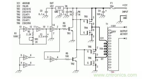該逆變器使用功率場效應(yīng)晶體管作為逆變器裝置。用汽車電池供電。因此,在輸入電壓為12伏直流電。輸出電壓是100V的交流電。但是,輸入和輸出電壓不僅限于此。您可以使用任何電壓。他們依賴于變壓器使用。波形輸出為方波。根據(jù)經(jīng)驗(yàn),這個(gè)電路約100W功率 。