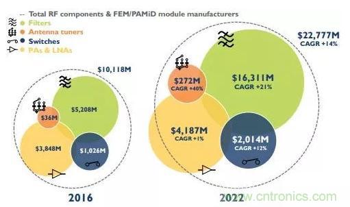 數(shù)據(jù)來源:《手機射頻前端模塊和組件-2017版》