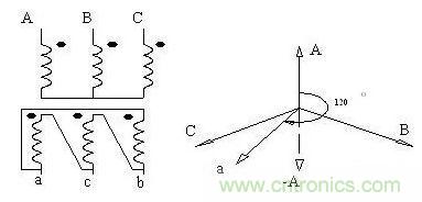 自耦變壓器有公共部分的兩繞組中額定電壓低的一個(gè)用符號(hào)a表示。變壓器按高壓、低壓繞組聯(lián)結(jié)的順序組合起來就是繞組的聯(lián)結(jié)組。