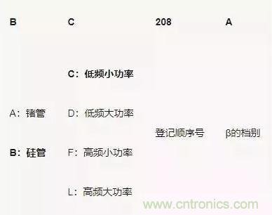 不同的國家/地區(qū)對三極管型號命名方式不同。還有很多廠家使用自己的命名方式。