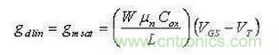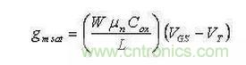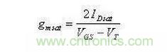 ②在飽和電流IDsat一定時:飽和跨導(dǎo)gmsat卻與飽和電壓(VGS-VT)成反比: