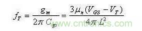 由于fT與gm的正比關(guān)系,就使得fT與飽和電壓(VGS-VT)也有正比關(guān)系,從而高頻率就要求較大的飽和電壓。