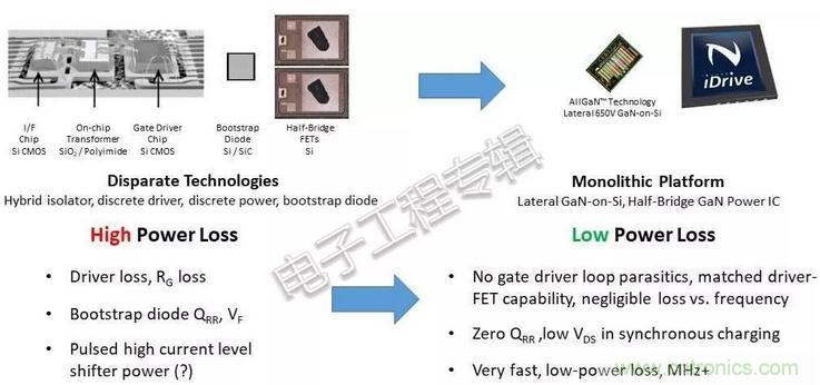 關(guān)于集成的另一個問題是ESD。標準硅MOSFET的ESD非常容易理解。PWMIC的ESD也是眾所周知的。而GaN器件是分立形式的,其ESD就不是那么容易理解。我們必須要小心,但如果你要設(shè)計功率IC,那么就要將ESD二極管放在上面。因此,這也成為通過集成使生活變得更為輕松的另一種方式,可以集成電平移位器,或半橋直通保護之類的東西。