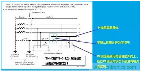 注意哦,圖2對應(yīng)的接地系統(tǒng)叫做TN-C,而圖3對應(yīng)的接地系統(tǒng)叫做TN-C-S。