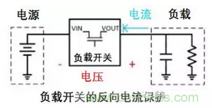 與MOS管一樣,負(fù)載開關(guān)可在關(guān)閉時(shí)阻止兩個(gè)方向上的電流(如下圖設(shè)計(jì))。