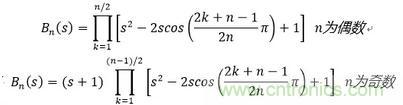 根據(jù)此特性要求,巴特沃斯低通濾波器的傳遞函數(shù)可由Butterworth多項(xiàng)式來實(shí)現(xiàn),即