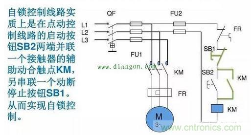 自鎖回路是電力控制中必不可少也是應(yīng)用最廣泛的基本電路,如圖所示: