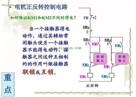 實(shí)際應(yīng)用中:接觸器的互鎖電路中,使用的是接觸器的常閉點(diǎn),和互鎖的接觸器線圈串聯(lián)。