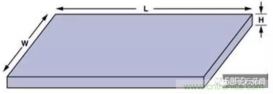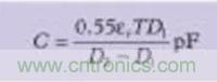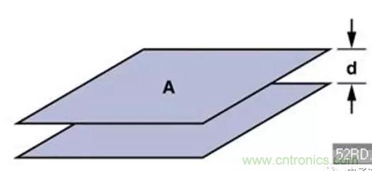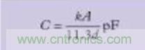 當(dāng)尋找有問(wèn)題的寄生源時(shí),可能用得著幾個(gè)計(jì)算上述那些寄生電容尺寸的基本公式。(公式一)是計(jì)算平行極板電容器的公式,如(圖五)。