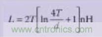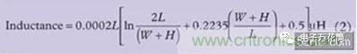 帶狀電感是另外一種需要考慮的寄生效應(yīng),它是由于印制線過(guò)長(zhǎng)或缺乏接地平面引起的。(公式二)顯示出計(jì)算印制線電感(Inductance)的公式。可參考(圖六)。
