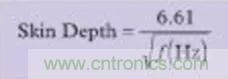 在高頻段,必須考慮一種稱(chēng)為趨膚效應(yīng)的現(xiàn)象。趨膚效應(yīng)會(huì)引起電流流向?qū)Ь€的外表面,結(jié)果會(huì)使得導(dǎo)線的橫截面變窄,因此使直流(DC)電阻增大。雖然趨膚效應(yīng)超出了本文討論的范圍,這里還是給出銅線中趨膚深度(Skin Depth)的一個(gè)很好的近似公式(以cm為單位):