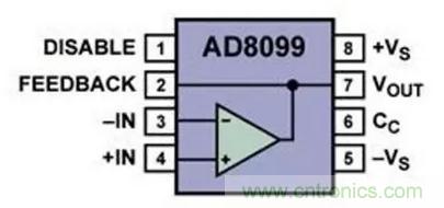 採(cǎi)用低失真引腳排列的一些運(yùn)算放大器,有助于消除上面提及的兩個(gè)問(wèn)題;而且它還提高了其他兩個(gè)重要方面的性能。LFCSP的低失真引腳排列,如(圖十)所示,將傳統(tǒng)運(yùn)算放大器的引腳排列按著逆時(shí)針?lè)较蛞苿?dòng)一個(gè)引腳,并且增加了一個(gè)輸出引腳作為專(zhuān)用的反饋引腳。