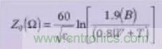 用于帶狀線的特征阻抗計(jì)算公式如(公式七)所示:
