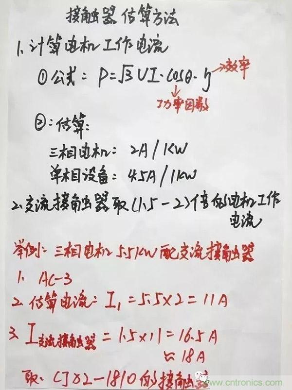 一,首先我們需要根據(jù)電動機的功率來計算工作電流。在這里提供兩個方法如圖所示: