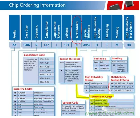 對于Knowles Novacap來說,它們的環(huán)氧樹脂安裝代碼由“P”(非RoHS)和“PR”(RoHS)指定為“鈀銀”端子。