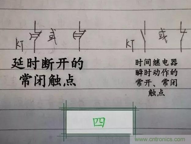 時(shí)間繼電器是控制電路中的常用電器之一。它的種類(lèi)很多,在交流電路中使用較多的有空氣阻尼式時(shí)間繼電器、電子式時(shí)間繼電器。時(shí)間繼電器在電路中的圖形和文字符號(hào)如下圖所示:(一到四圖)