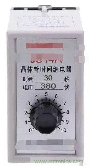 晶體管時(shí)間繼電器它是通過(guò)電子電路控制電容器充、放電的原理制成的。它的特點(diǎn)是體積小,延時(shí)范圍可達(dá)到0.1-60s、1-60min。它具有體積小、重量輕、準(zhǔn)確度高、壽命長(zhǎng)等優(yōu)點(diǎn)。實(shí)物圖片如下圖: