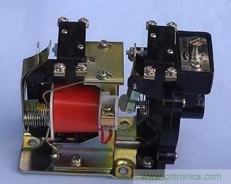 其中通電延時(shí)型時(shí)間繼電器動(dòng)作過(guò)程是:線(xiàn)圈不通電時(shí),線(xiàn)圈的銜鐵釋放壓住動(dòng)作杠桿,延時(shí)和瞬時(shí)觸點(diǎn)不動(dòng)作;當(dāng)線(xiàn)圈得電吸合后,銜鐵被吸合,銜鐵上的壓板首先將瞬時(shí)觸點(diǎn)按下,觸點(diǎn)動(dòng)作發(fā)出瞬時(shí)信號(hào)。這是因?yàn)殂曡F吸合動(dòng)作杠桿不受壓力,在助力彈簧作用下慢慢動(dòng)作(也就是延時(shí)),動(dòng)作到達(dá)最大位置杠桿上的壓板按動(dòng)延時(shí)觸點(diǎn),觸點(diǎn)動(dòng)作發(fā)出延時(shí)信號(hào),直至線(xiàn)圈無(wú)電釋放,動(dòng)作結(jié)束。其實(shí)物圖片如下圖: