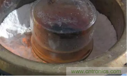 大約 30 到 40 分鐘以后,芯片外層的保護膠塑料層就會「碳化」。