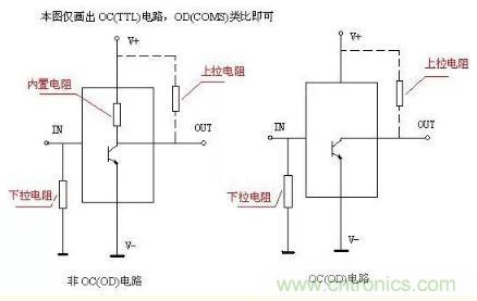 當(dāng)TTL電路驅(qū)動(dòng)CMOS電路時(shí),如果TTL電路輸出的高電平低于CMOS電路的最低高電平,這時(shí)就需要在TTL的輸出端接上拉電阻,以提高輸出高電平的值;OC門(mén)電路必須加上拉電阻,以提高輸出的高電平值。