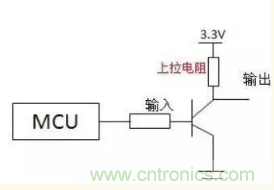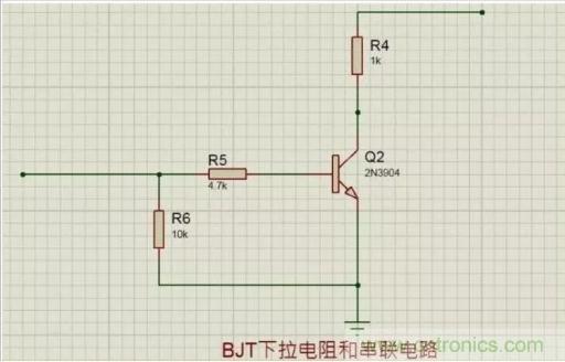 如下圖中的R5所示,上拉電阻使三極管基極的輸入電平在默認(rèn)情況下是高電平輸入,當(dāng)CPU有低電平信號(hào)輸出時(shí),外圍電路響應(yīng),下拉電阻使晶體管的基極輸入在默認(rèn)情況下拉到低電平,如下圖中的R6所示。