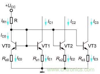 當(dāng)Re0=Re1時(shí),IC1仍然等于IR,但此電路的IR由式(2-4)約定,比式(2-2)的IR小,一般用于前置放大器的輸入級(jí)。