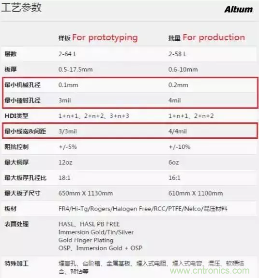 所以我們要學習蘇聯(lián)式的設計經驗——在現(xiàn)有生產條件下堆出最優(yōu)良的產品。包括電路板層數(shù),厚度,孔徑,最小線寬線距,銅厚等基本參數(shù)要求;也包括板材類型,表面處理,特殊加工等特別要求。一般在PCB加工的時候,分測試用的打樣加工,以及最終成型的批量產品加工。對于設計師來說,有實際意義并需要嚴格遵守的是批量產品加工的工藝要求。