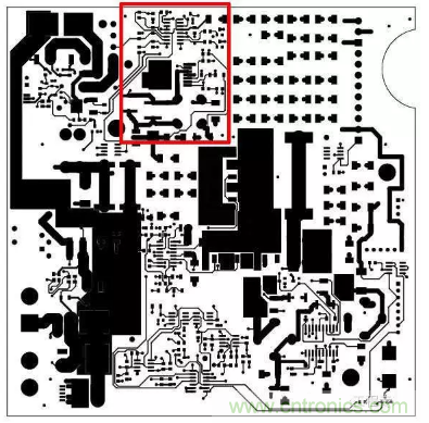 圖3 這是自動測試設(shè)備的PCB,因?yàn)槭孪攘私膺^那顆SEPIC轉(zhuǎn)換器(以紅框標(biāo)示),我的設(shè)計(jì)第一次就成功。