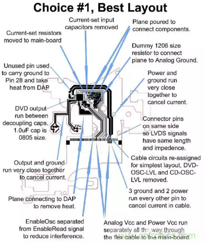我在某家半導(dǎo)體公司任職時(shí),做的是驅(qū)動PC用DVD刻錄機(jī)內(nèi)雷射頭的芯片;我看了一眼某客戶設(shè)計(jì)的軟性電路板原型,就知道他們?nèi)狈Ω咚倩蛏嵩O(shè)計(jì)方面的經(jīng)驗(yàn),畢竟他們之前做的CD刻錄機(jī)數(shù)據(jù)速率比較低,而且用的芯片不會產(chǎn)生太多熱度。而我們花了大半年的時(shí)間教客戶該怎么設(shè)計(jì)他們的PCB(圖5)。