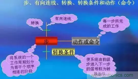 在控制系統(tǒng)的一個工作周期中,各依次順序相連的工作階段,稱為步或工步,用矩形框和文字(或數(shù)字)表示。步有兩種狀態(tài):“活動步、“非活動步” 、“初始步”:一系列活動步決定控制過程的狀態(tài)。對應控制過程開始階段的步,每一個功能表圖至少有一個初始步,初始步用雙線矩形框表示。