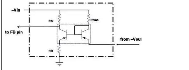 通過(guò)以與感測(cè)和放大差分電壓時(shí)使用的配置非常相似的配置連接運(yùn)算放大器,可以將其用于負(fù)降壓配置中,以共同按比例縮小輸出電壓。這使得它適合 FB 引腳(從而設(shè)置穩(wěn)壓器的輸出電壓),同時(shí)將該電壓的參考從系統(tǒng)接地轉(zhuǎn)移到 -Vin 軌。