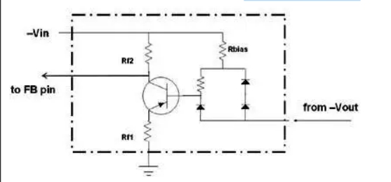 在使用低側(cè) FET 升壓 IC 實(shí)現(xiàn)的負(fù)降壓應(yīng)用中,輸出 (-Vout) 及其任何分壓樣本仍然以系統(tǒng)接地為參考。然而,由于 IC 接地引腳連接到 -Vin 而不是系統(tǒng)接地,因此 IC 將無(wú)法正確讀取 FB 電壓(也不會(huì)正確保持調(diào)節(jié)),因此需要轉(zhuǎn)換該電壓,使其以 IC 接地引腳為參考。