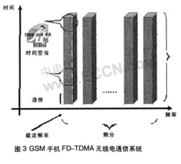 思考當(dāng)今電子世界,到處信號(hào)持續(xù)不斷地變化:音頻的輸入/輸出能產(chǎn)生輻射及傳導(dǎo)EMI,然后發(fā)射更高頻率的射頻線,導(dǎo)致信號(hào)失真;手機(jī)天線(TDMA脈沖)會(huì)發(fā)射射頻信號(hào),此信號(hào)可被長(zhǎng)線頭戴式耳機(jī)接收,導(dǎo)致音頻信號(hào)通路中EMI噪音;GSM(全球通)手機(jī)標(biāo)準(zhǔn)使用頻分多路傳輸和時(shí)分多路傳輸,同時(shí)傳送大量電話,如圖3所示。