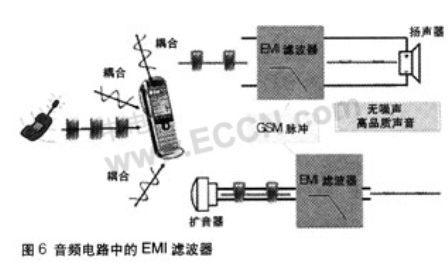 在音頻電路中如有電磁干擾(EMI),會(huì)出現(xiàn)嘶嘶、噼啪、嗡嗡等聲音,聲音質(zhì)量很差。手機(jī)用戶無(wú)法忍受這樣的干擾。因此,必須設(shè)法過(guò)濾音頻電路的電磁干擾。