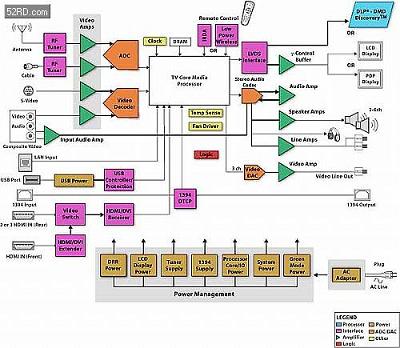 ■VideoDecoder:傳統(tǒng)NTSC/PAL/SECAM等TV信號采取復(fù)合波形輸入,VideoDecoder內(nèi)含梳形濾波器(Combfilter)功能,可以將復(fù)合端子(Composite、CVBS)、S端子或色差端子(YpbPr/YUV)所輸入的模擬信號分離,內(nèi)含多組ADC將它轉(zhuǎn)換為數(shù)字信號。