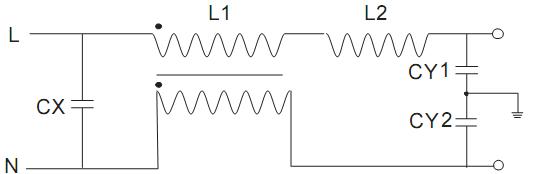 圖1是開關(guān)電源常用的一級EMI 濾波器的電路。圖中的L1為共模扼流圈,Cx、CY1、CY2為安規(guī)電容,對于小型開關(guān)電源來講,由于體積的限制,很多時(shí)候會將CY1、CY2會省略掉的,甚至連L1也會省去。圖中 共模扼流圈L1的兩個(gè)線圈匝數(shù)相等,方向相同,這兩個(gè)電感對于差模電流和主電流所產(chǎn)生的磁通是方向相反、互相抵消的,因而不起作用;而對于共模干擾信號,兩線圈產(chǎn)生的磁通方向相同,有相互加強(qiáng)的作用,每一線圈電感值為單獨(dú)存在時(shí)的兩倍,從而得到一個(gè)高阻抗,起到良好的抑制作用。共模電感兩邊感量不相等形成的差模電感L2一起與Cx電容組成一個(gè)低通濾波器,用來抑制電源線上存在的差模干擾信號。CY1與CY2的存在是給共模噪聲提供旁路,同時(shí)與共模電感一起,組成LC低通濾波器。共模噪聲的衰減在低頻時(shí)主要由電感起作用,而在高頻時(shí)大部分由電容CY1及CY2起作用。同時(shí),在安裝與布線時(shí)應(yīng)當(dāng)注意:濾波器應(yīng)盡量靠近設(shè)備入口處安裝, 并且濾波器的輸入和輸出線必須分開,防止輸入端與輸出端線路相互耦合,降低濾波特性。濾波器中電容器導(dǎo)線應(yīng)盡量短,以防止感抗與容抗在某頻率上形成諧振。