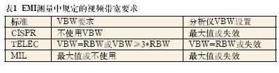 在大多數(shù)EMI測量中,視頻濾波器指定為關閉,或視頻濾波器指定為至少比測量的指定RBW高出三倍(參見表1)。