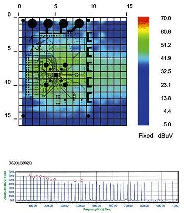 在任何新PCB的開發(fā)過程中,設(shè)計工程師都必須找出設(shè)計之外的輻射體或射頻泄漏,并對其進行描述和處理以通過一致性測試??赡艿妮椛潴w包括高速、大功率器件以及具有高密度或高復(fù)雜度的器件。掃描系統(tǒng)以疊加在Gerber文件上的形式顯示空間輻射特性,因此測試人員可以準確地找出所有輻射問題的來源。設(shè)計工程師可以在采取了相應(yīng)的解決措施之后,對器件進行重新測試并立即量化出校正設(shè)計后的效果。