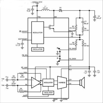 LM48511是一個擴頻調(diào)制式D類音頻放大器,內(nèi)部集成了一個內(nèi)置式升壓穩(wěn)壓器,可把電壓提升至7V,從而增強放大器的輸出功率和音頻聲壓級。此外,該升壓穩(wěn)壓器即使在電池衰減的情況下也可使放大器維持一個固定的輸出水平。