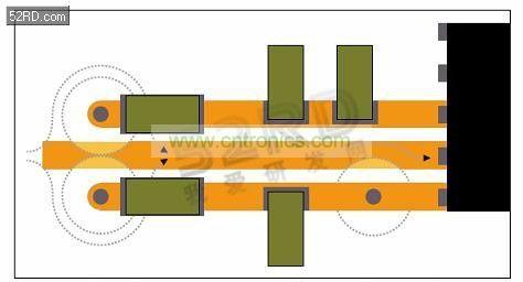 時(shí)鐘和控制線路應(yīng)由內(nèi)部接地層或頂層接地灌流(ground pour)與RF信號(hào)線路隔離。如果不能使用接地隔離信號(hào),那么線路布線應(yīng)確保直角交叉。因?yàn)闀r(shí)鐘或控制線路發(fā)射的磁通線路會(huì)圍繞干擾源線路的電流形成放射柱形等高線,它們將不會(huì)在接收器線路中產(chǎn)生電流。放慢上升時(shí)間不但可降低轉(zhuǎn)折頻率,而且還有助于減少干擾源的干擾,但時(shí)鐘或控制線路也可充當(dāng)接收器線路。接收器線路仍可作為將寄生信號(hào)導(dǎo)入器件的導(dǎo)管。