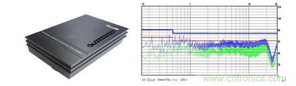雖然電源自身電磁干擾方面投入了很大的設(shè)計成本,也符合承諾的各項指標要求,但是電源在市場應(yīng)用方面還是難免出現(xiàn)電磁干擾超標的問題;此時,很多的設(shè)計工程師都會認為問題的根源在于電源,這方面的認識其實是有誤區(qū)的,因為電磁干擾傳導騷擾測試項目,主要是針對電源端口的,那么電源端口就成了他的傳輸路逕,所有的電磁干擾都會經(jīng)過電源端口到達被測設(shè)備,但是測試設(shè)備測試到的電磁干擾除了來自電源本身外,主要的部分還包括整機中的其他部分產(chǎn)生的電磁干擾,以及設(shè)備內(nèi)部寄生參數(shù)的諧振產(chǎn)生的電磁干擾,這一類電磁干擾會通過電源端口耦合到測試設(shè)備,電源內(nèi)部的濾波器是無法進行實現(xiàn)對這部分電磁干擾進行濾波,電源應(yīng)用環(huán)境千差萬別,所有電源設(shè)計濾波器部分都是以解決自身的干擾為首要考慮條件的同時,濾波器衰減特性及頻譜特性盡量會預留最大的余量,但不可能兼容所有應(yīng)用場合;那么這就要求我們的整機設(shè)計人員在設(shè)計電源前端時候,一定要按照電源廠家推薦的應(yīng)用電路進行設(shè)計,例如:LH15產(chǎn)品應(yīng)用過程中出現(xiàn)EMI超標問題(見下圖)。