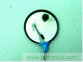 壓敏電阻對于瞬態(tài)浪涌脈沖進行電流泄放,多次泄放以后壓敏電阻的介質(zhì)ZnO會發(fā)生特性變化,這樣壓敏電阻的殘壓特性、泄放能力都會大大降低;更加嚴重的是壓敏電阻這種兩面鍍銀結(jié)構(gòu),表面鍍銀并無法實現(xiàn)100%均勻,那就說明每次瞬態(tài)浪涌沖擊,必然會存在整個壓敏電阻的表面有某個點最先導通,最先擊穿導通的點在承受多次沖擊之后,后首先燒毀,最終導致壓敏電阻損壞(見下圖)。
