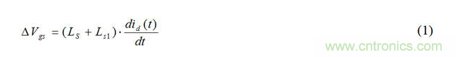 在諧振條件(ωL = 1/ωC)下,柵極和源極 電壓中生成的震蕩電壓遠(yuǎn)大于驅(qū)動(dòng)電壓。因諧振變化而產(chǎn)生的電壓振蕩與品質(zhì)因數(shù)成正比, Q(=ωL/R = 1/ωCR)。當(dāng)MOSFET關(guān)閉時(shí),漏極寄生電感(LD + Ld1)、柵極-漏極電容Cgd和柵極引線電感Lg1網(wǎng)絡(luò)造成柵極 振蕩電壓。如果柵極電阻 (RG-ext.+Rg_int.)極小,則Q變大。另外,LS兩端的壓降和Ls1源極雜散電感在柵極-源極電壓中產(chǎn)生振蕩,可用表達(dá)式(1)表示。寄生振蕩可能造成柵源極擊穿、不良EMI、較大開關(guān)損耗、柵極控制失效,甚至可能造成MOSFET故障。
