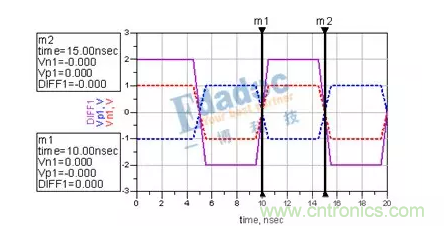 眾所周知,SERDES信號(hào)都是由差分傳輸?shù)?,也就是說,兩根信號(hào)線同時(shí)傳輸兩個(gè)大小相等,方向相反的信號(hào),接收端接收到的信號(hào)由兩線相減得來。當(dāng)兩根線完全等長的時(shí)候,我們看到的波形應(yīng)該是這樣子的: