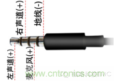 2、耳機(jī)采用的是蘋果標(biāo)準(zhǔn)接口,蘋果耳機(jī)接口圖如下,從圖中可以看出HP_MIC在耳機(jī)母座最外面一個腳,金屬彈片正好裸露在外面,極易受靜電影響。