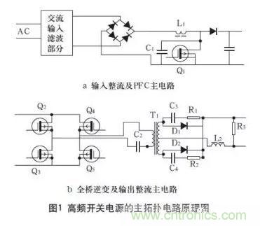 高頻開關(guān)電源的主拓撲電路原理,如圖1所示。
