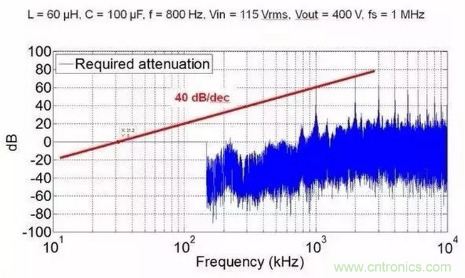 我知道很多人會(huì)說(shuō),怎么可能,di/dt和dv/dt都大了,怎么可能EMI濾波體積還小了。我想說(shuō)一句,共模和差模濾波器的沒(méi)有區(qū)別,相同的截止頻率下,高頻的衰減更大!就算你高頻下共模噪聲越大,但是你的記住,這個(gè)頻率下LC濾波器的衰減更大,想想幅頻曲線吧。為了說(shuō)明這個(gè)結(jié)論,我給出一些定量分析結(jié)果。這些EMI分析均基于AC/DC三相整流,拓?fù)錇榫S也納整流。我分別給出了1Mhz和500Khz的共模噪聲,可以看出,500khz共模濾波器需要的截止頻率為19.2kHz,1MHz為31.2kHz。