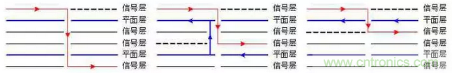 9、關(guān)鍵信號(hào)線(如時(shí)鐘線、總線、接口信號(hào)線、很射頻線、復(fù)位線、片選線)一般都是強(qiáng)輻射源或敏感信號(hào)線,盡可能靠近地平面布線,使其信號(hào)回路面積減少,減少其輻射強(qiáng)度或提高抗干擾能力。