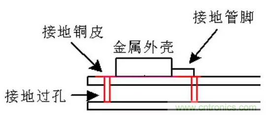 12、金屬外殼接地的器件如晶振,應(yīng)在其投影面的頂層上鋪接地鈾皮,目的是通過金屬外殼與接地銅皮之間的分布電容來抑制其對(duì)外輻射和提高抗干擾能力。