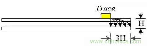 11、關(guān)鍵信號(hào)線距參考地平面邊沿≥3H(H為線距離參考平面的高度),特別是電源走線